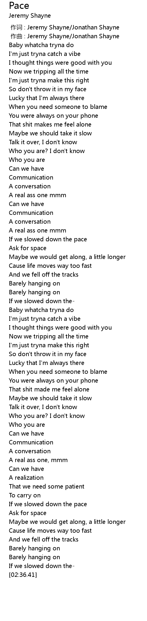 | [00:00.00] | 作词 : Jeremy Shayne/Jonathan Shayne |