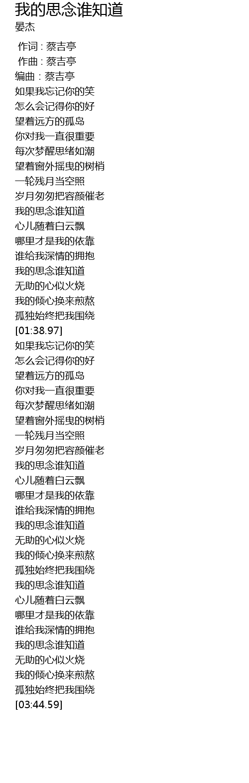 | [03:12.44] | wǒ de sī niàn shéi zhī dào |