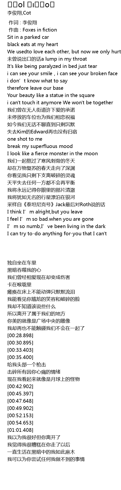 | [00:25.902] | i can' t touch it anymore We won' t be together |