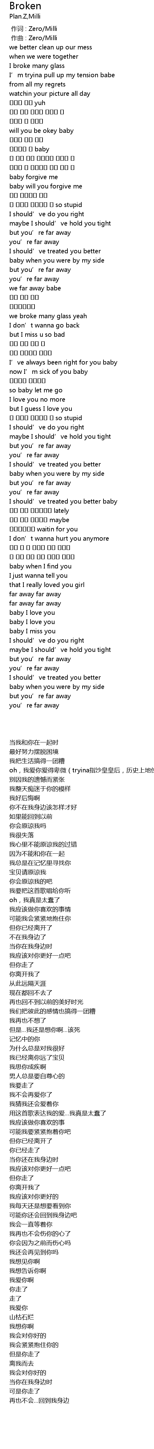 | [00:00.000] | 作词 : Zero/Milli |
