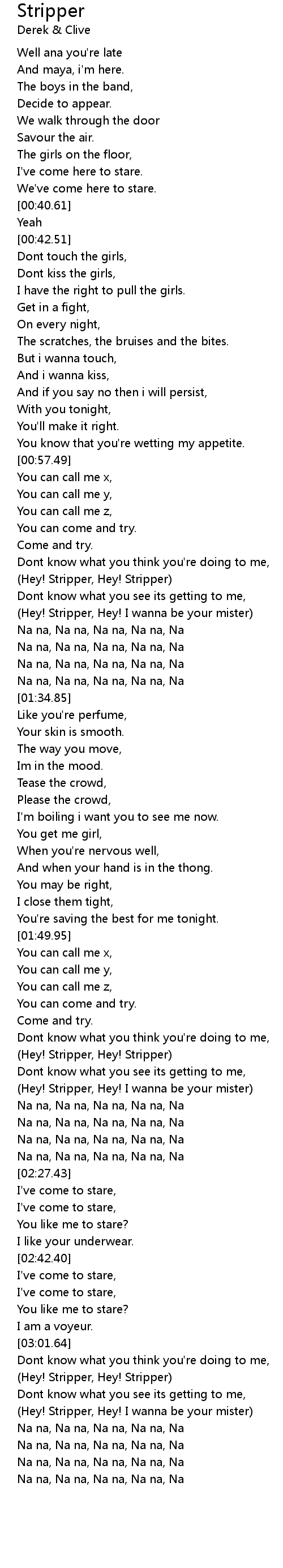 (Hey! Stripper, Hey! I wanna be your mister) |