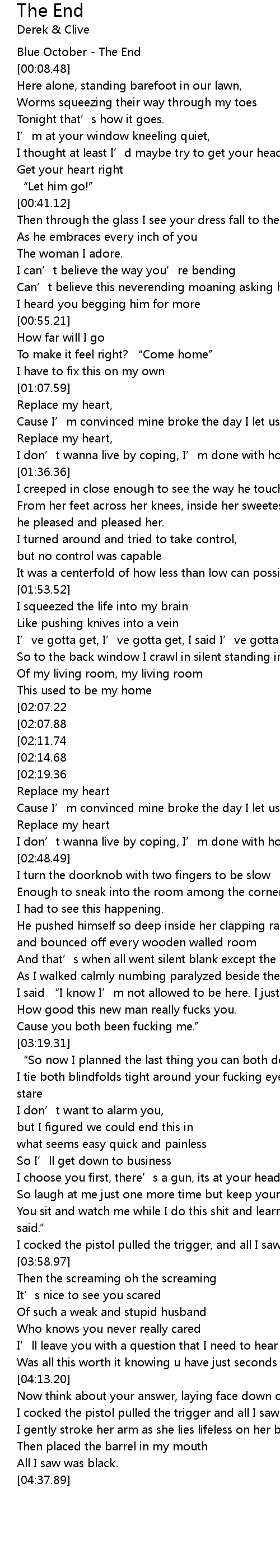 | [00:01.12] | Blue October - The End |