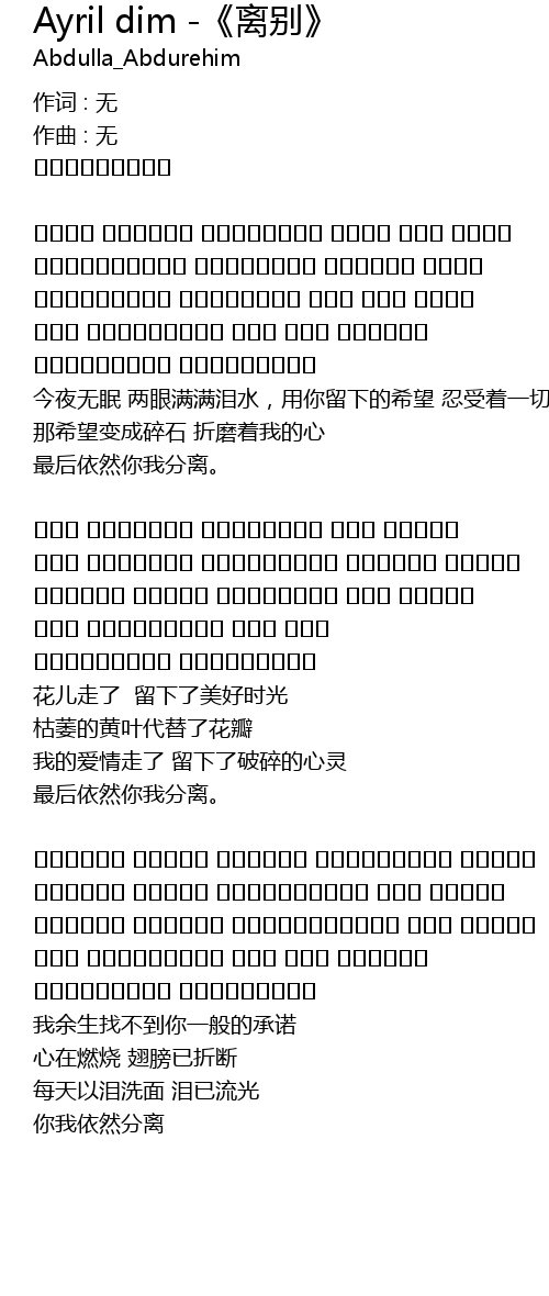 | zuì hòu yī rán nǐ wǒ fēn lí. | |