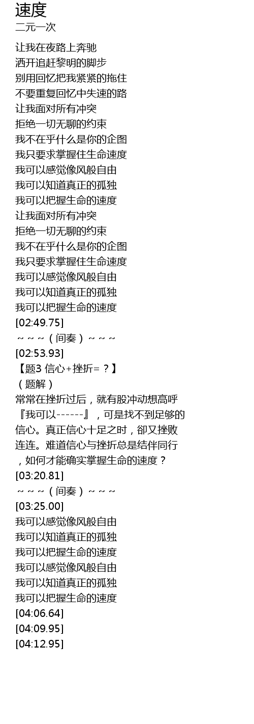 | [02:20.58] | 我只要求掌握住生命速度 |