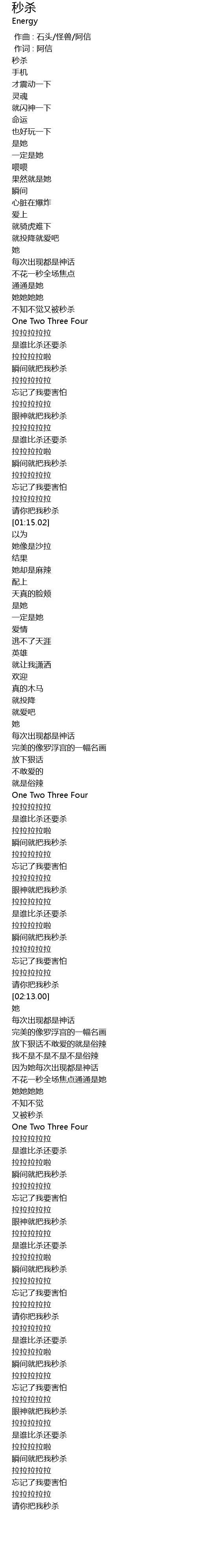 | [00:01.02] | 秒杀 |