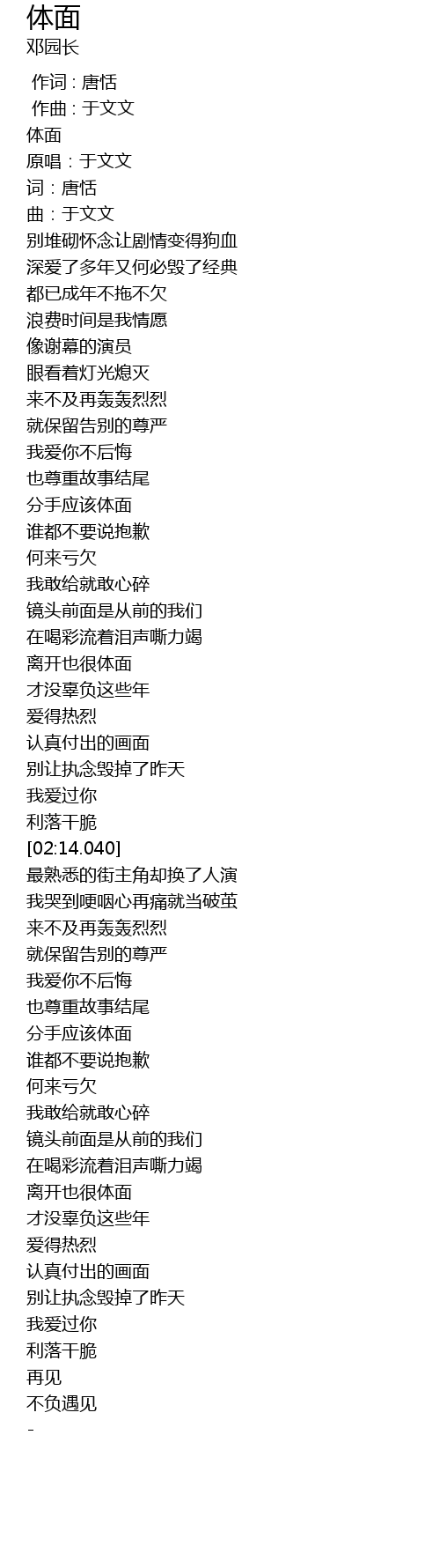 | [01:52.543] | lí kāi yě hěn tǐ miàn |