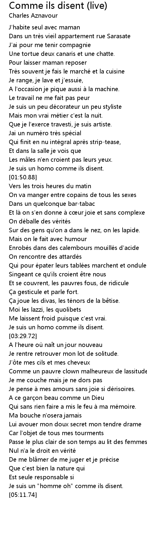 | [03:22.26] | Je suis un homo comme ils disent. |