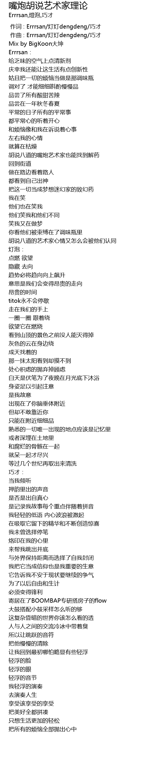 | [00:59.684] | 胡说八道的艺术家心情又怎么会被他们认同 |