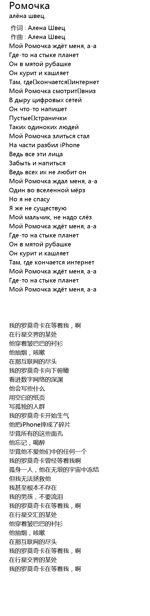 作词 : Алена Швец |