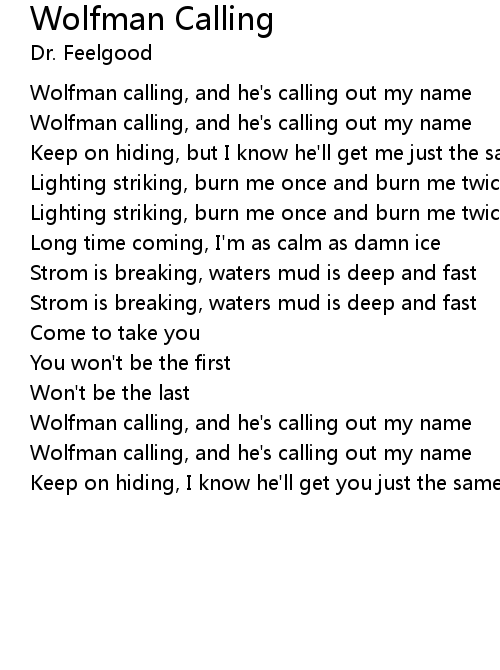 Wolfman calling, and he's calling out my name |