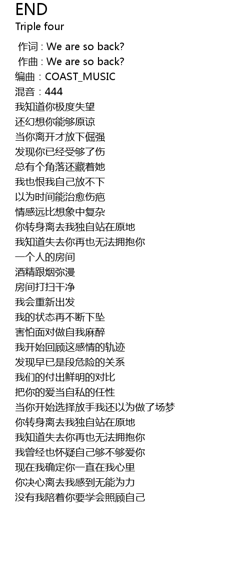 | [00:07.638] | 编曲:COAST_MUSIC |