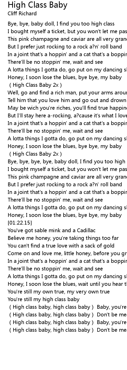 | [01:55.51] | High class baby, high class baby Don' t be mean to me, baby |