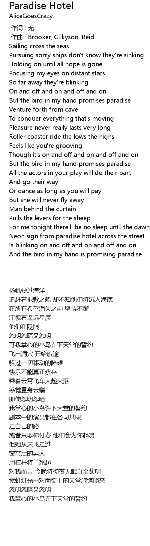 | [02:40.286] | And the bird in my hand is promising paradise |
