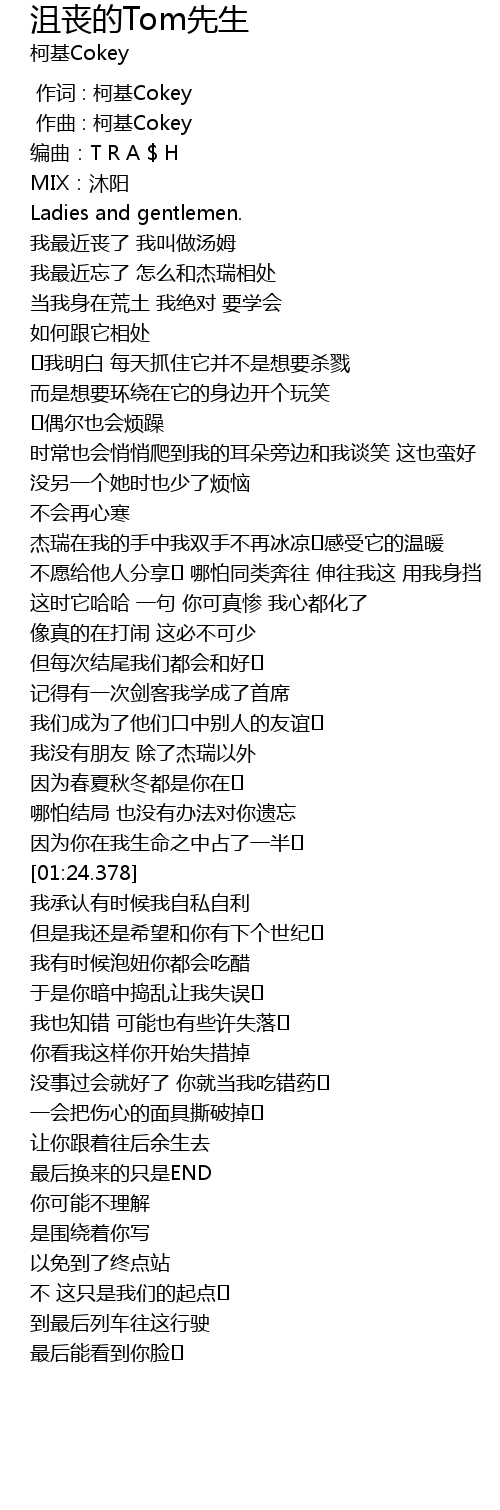| [00:20.378] | 我最近丧了 我叫做汤姆 |