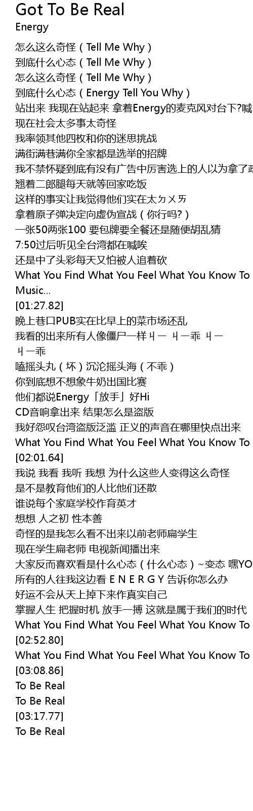 | [03:18.34] | To Be Real |