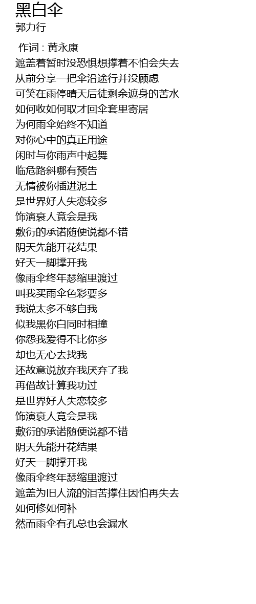 | [00:42.41] | 为何雨伞始终不知道 |