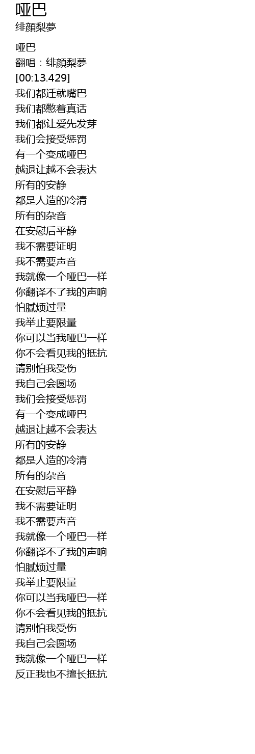 | [00:04.929] | 哑巴 |