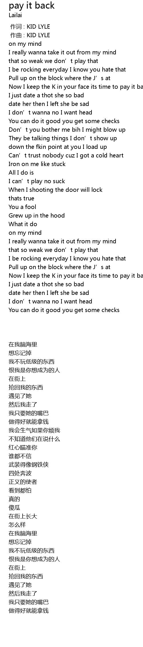 | [00:33.184] | Now I keep the K in your face its time to pay it back |