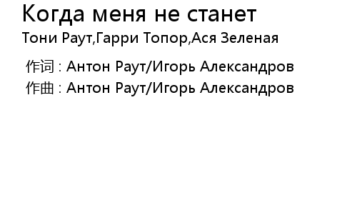 | [00:00.00-1] | 作词 : Антон Раут/Игорь Александров |