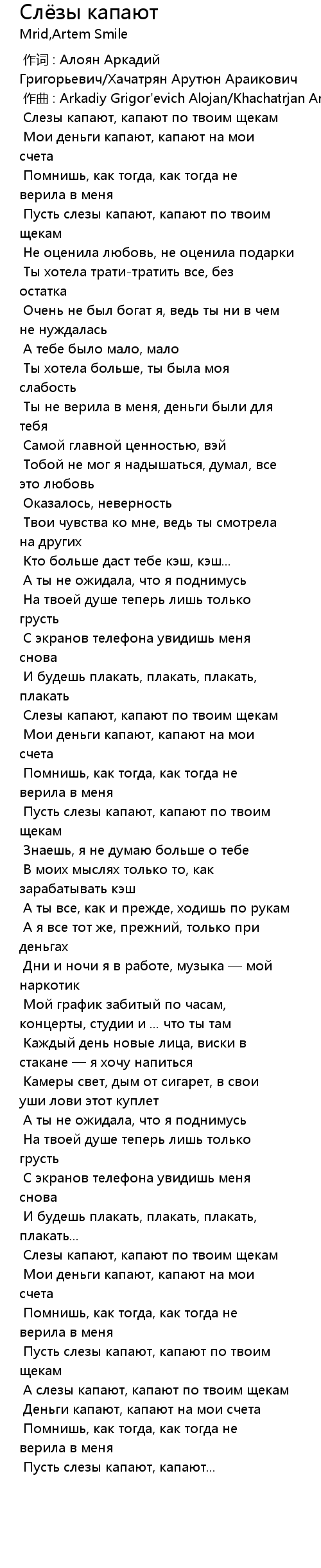 [01:19.375] Пусть слезы капают, капают по твоим щекам
