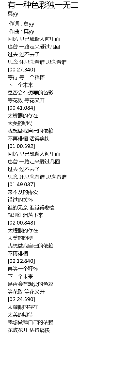 | [00:02.188] | 回忆 早已飘逝人海里面 |