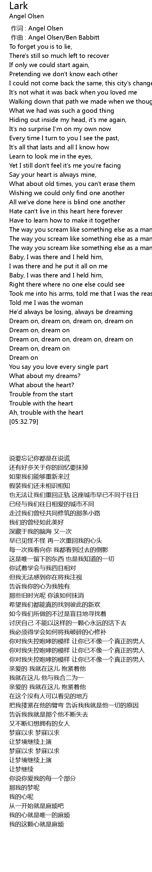 | [00:00.00] | 作词 : Angel Olsen |