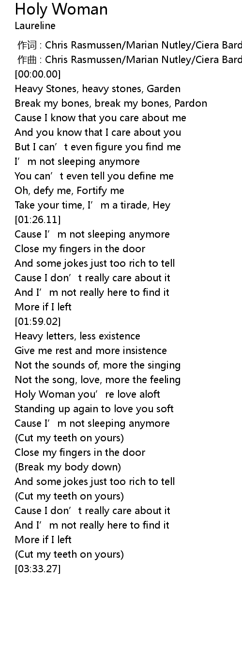 | [02:39.59] | Holy Woman you’re love aloft |