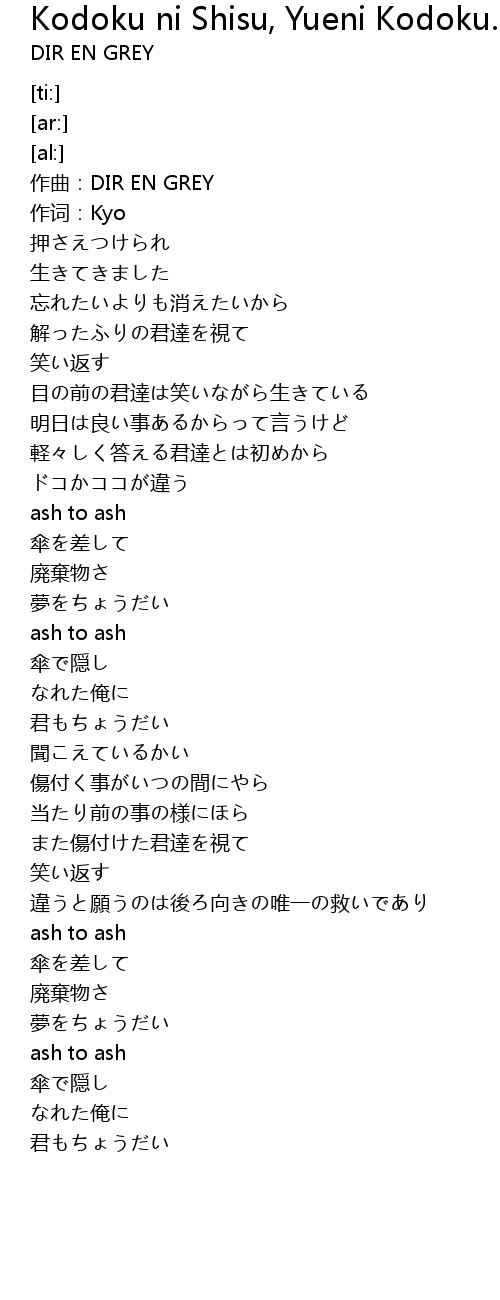 | [00:05.00] | zuo qu: DIR EN GREY |
