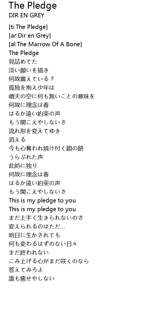 | [00:01.58] | The Pledge |