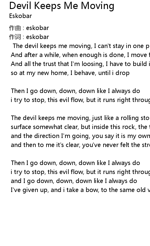 | The devil keeps me moving, I can' t stay in one place | |