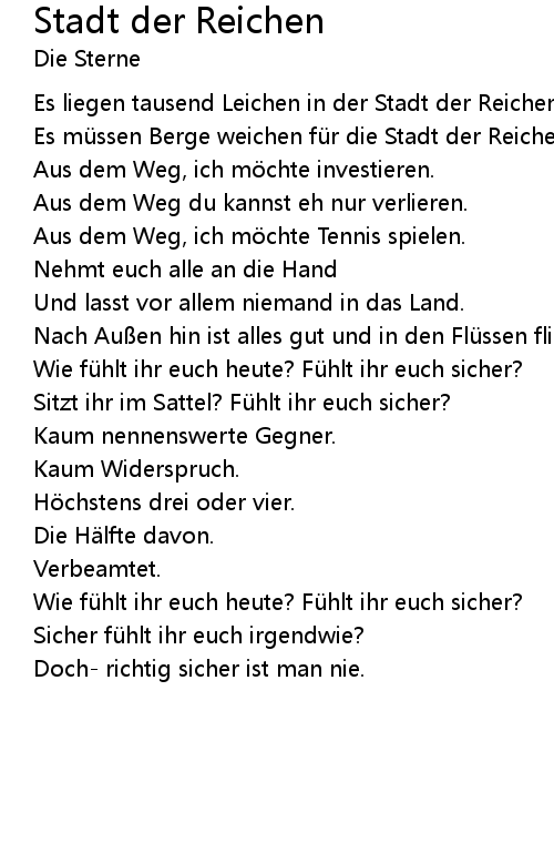 | Song | Stadt der Reichen |