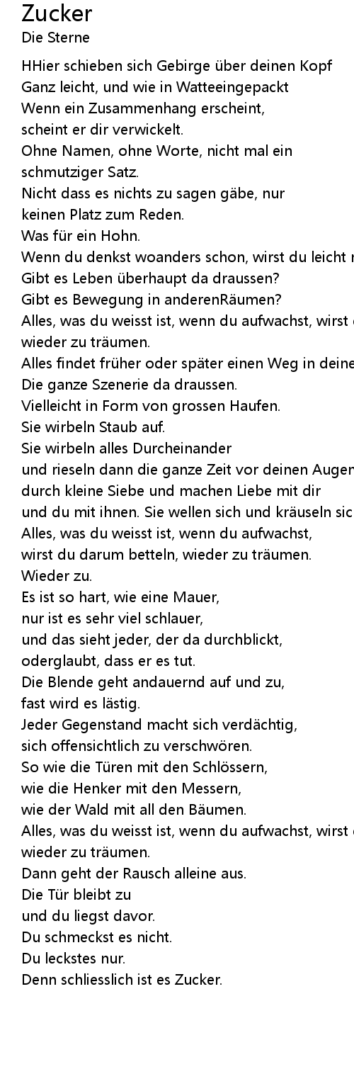 | Song | Zucker |