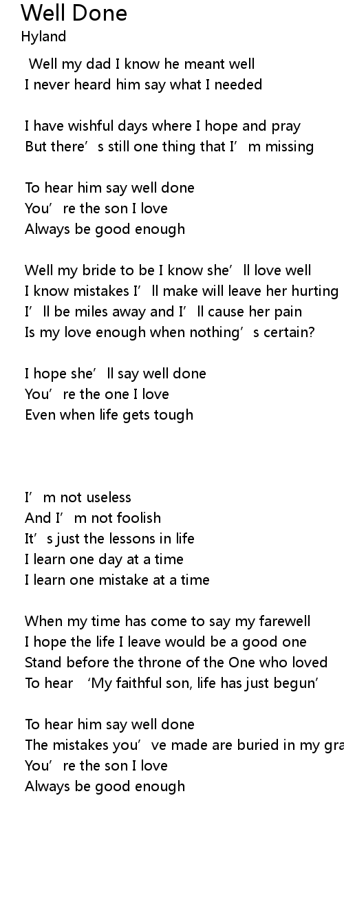 | To hear him say well done | |