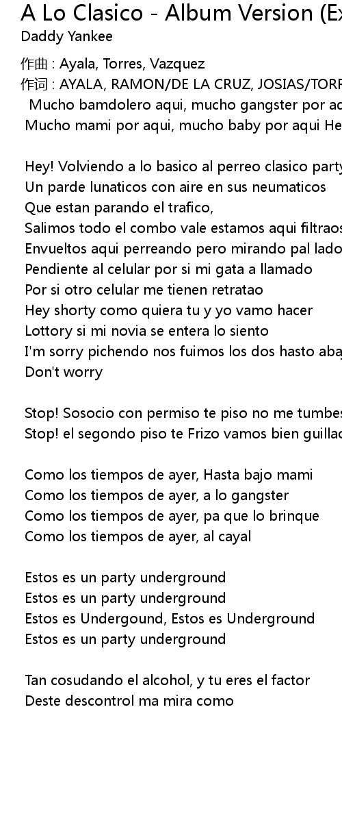 | Song | A Lo Clasico - Album Version (Explicit) |