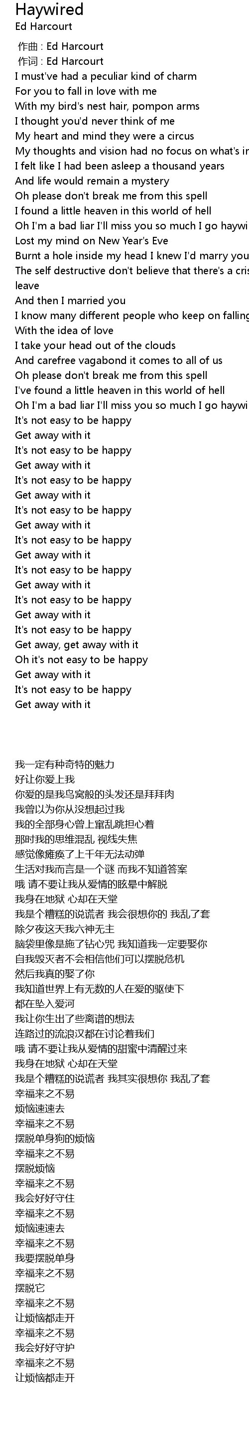 | [03:53.32] | Oh it' s not easy to be happy |