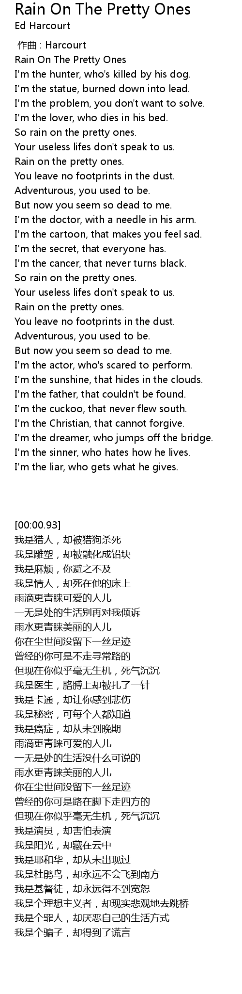 | [00:34.00] | I'm the hunter, who's killed by his dog. |