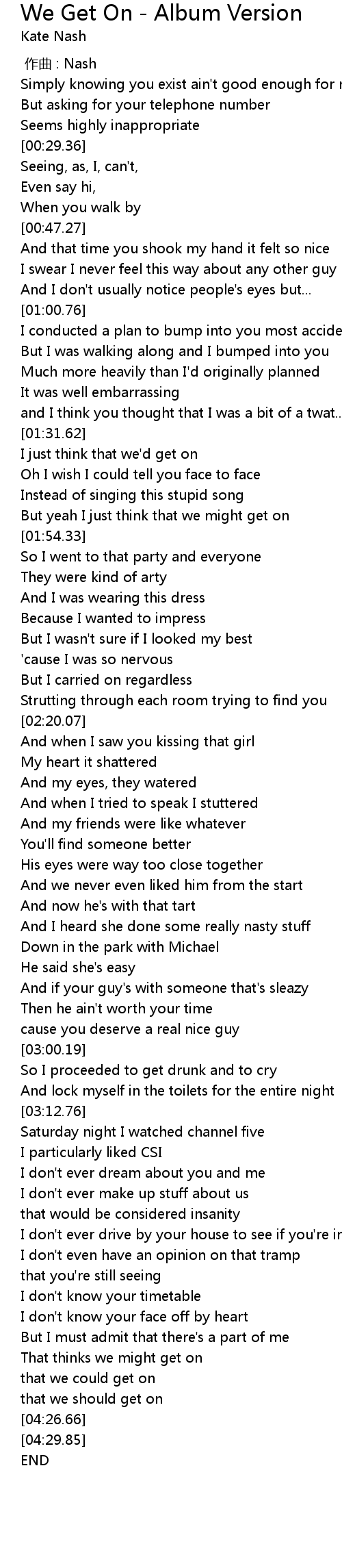 | [01:24.97] | and I think you thought that I was a bit of a twat... |