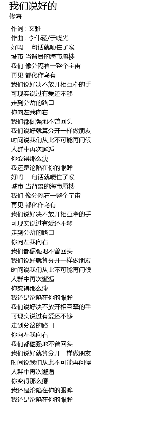 | [03:12.927] | 我们说好就算分开一样做朋友 |