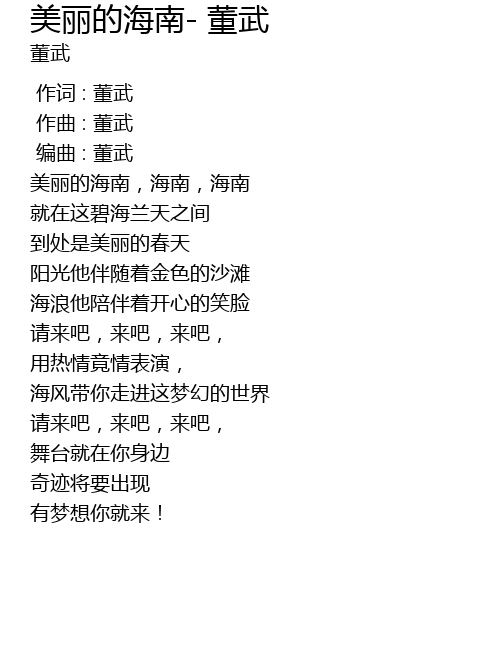 | [00:17.435] | 美丽的海南,海南,海南 |