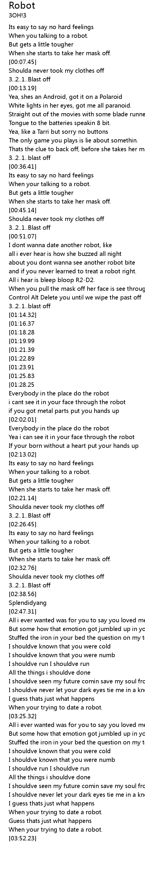 | [01:29.89][01:18.28] | When your talking to a robot. |