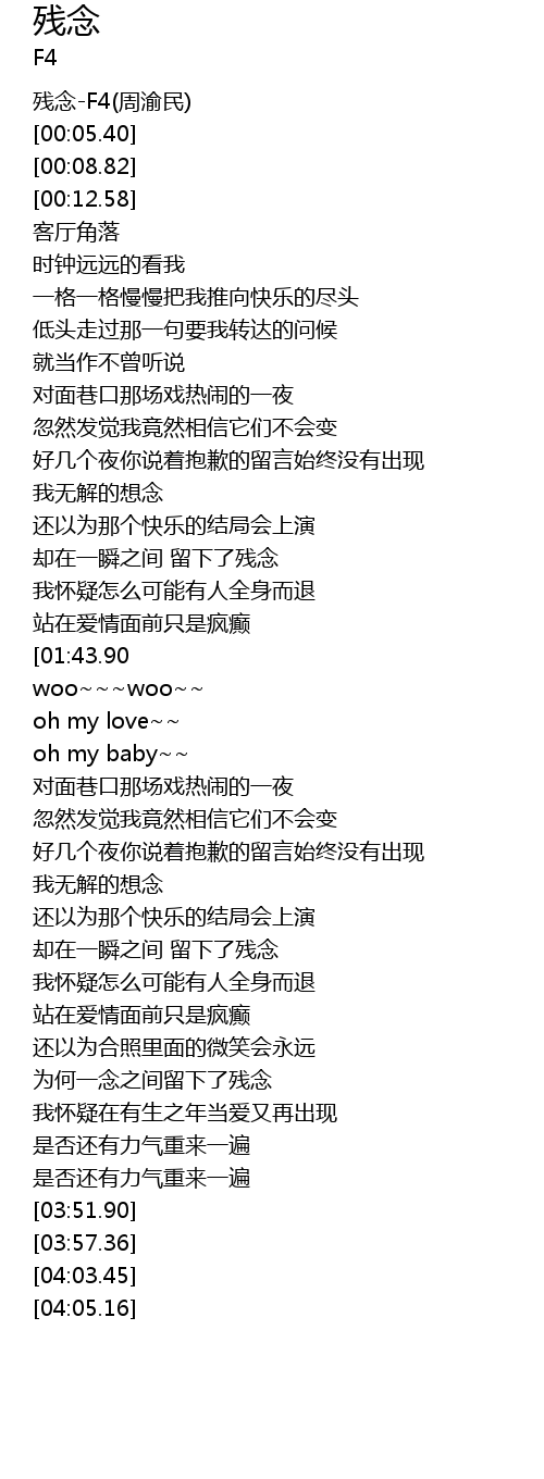 | [00:02.27] | 残念-F4(周渝民) |