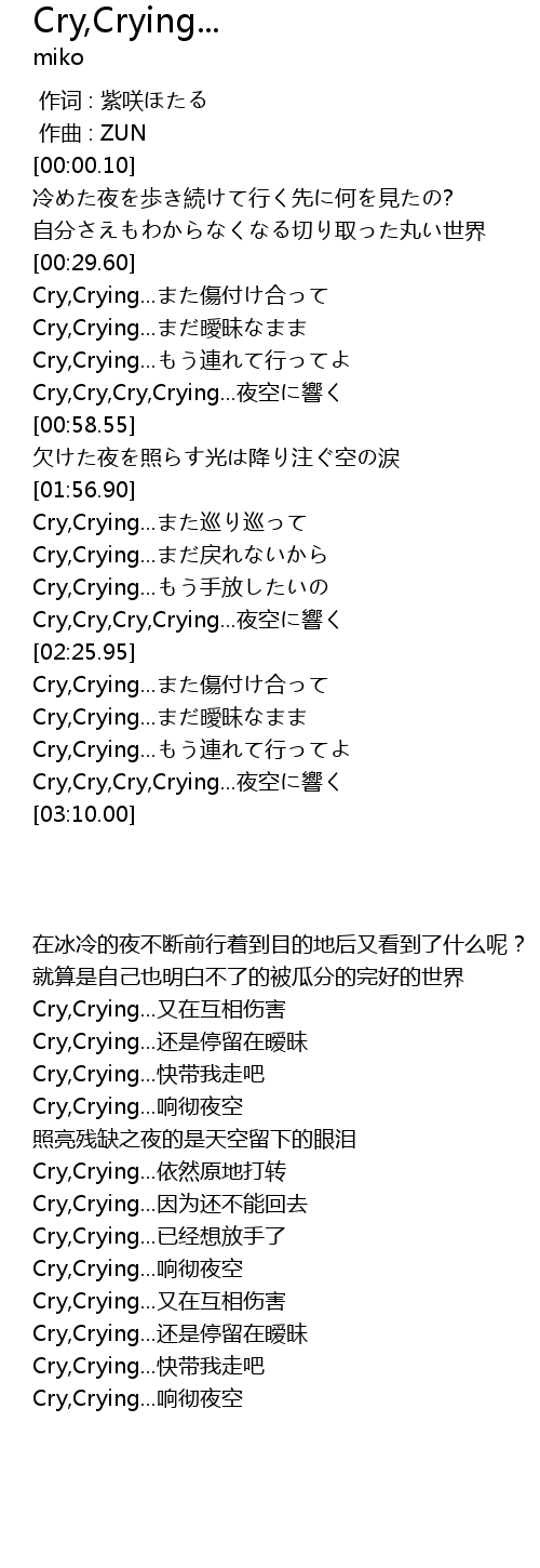 | [03:02.15] | Cry,Cry,Cry,Crying...夜空に響く |