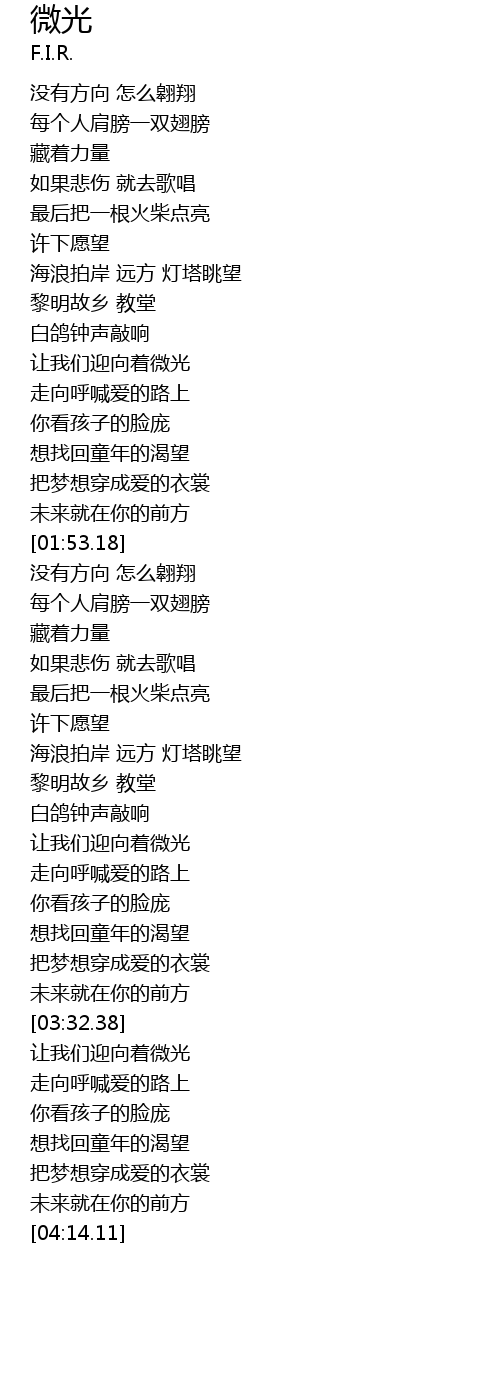 | [03:57.65] | 把梦想穿成爱的衣裳 |