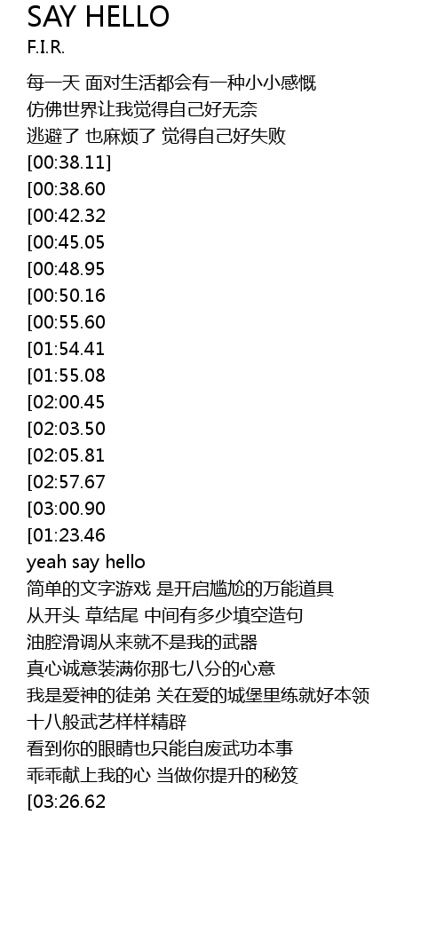 | [00:11.16] | yeah say hello |