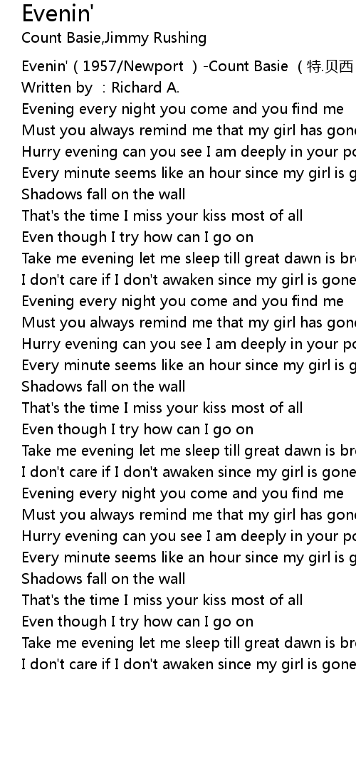 | [00:00.00] | Evenin' 1957 Newport Count Basie te. bei xi Jimmy Rushing |