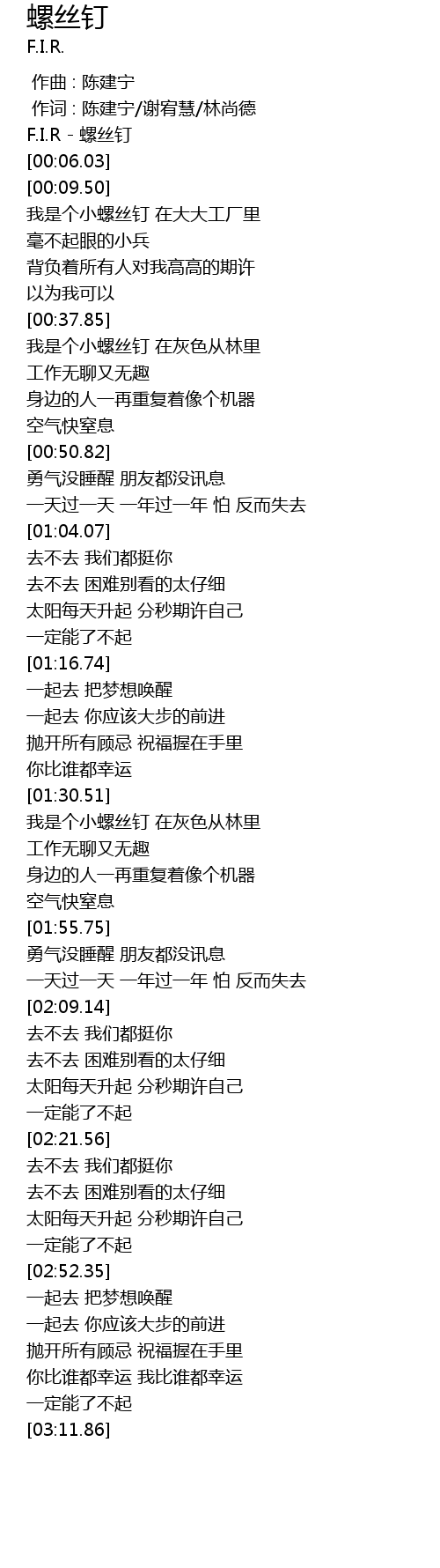 | [00:38.96] | 我是个小螺丝钉 在灰色从林里 |