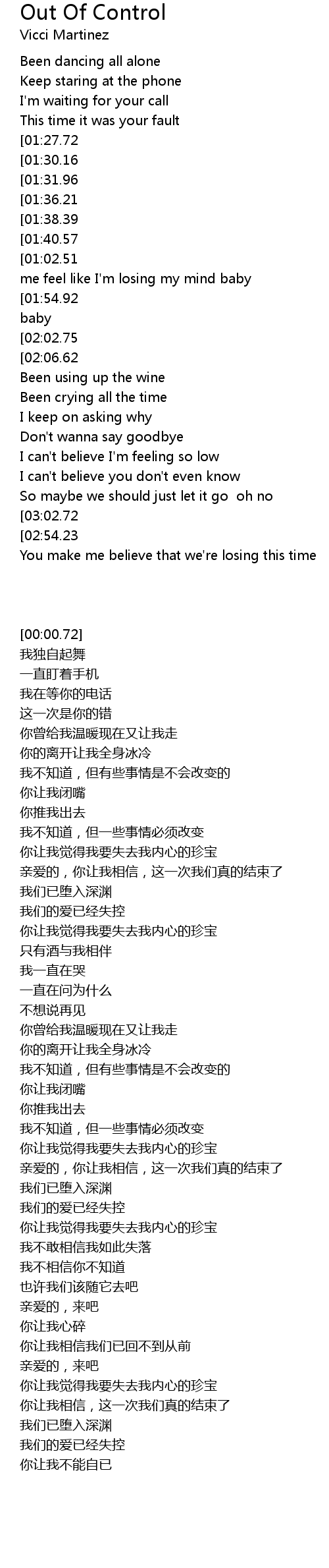 [00:56.77][02:06.62][03:24.62] Baby our love is out of control