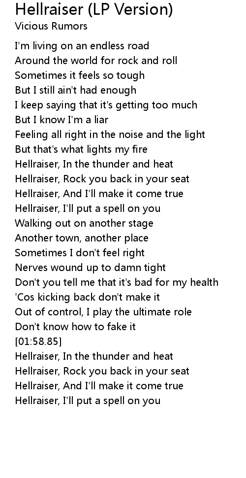 Hellraiser, Rock you back in your seat |