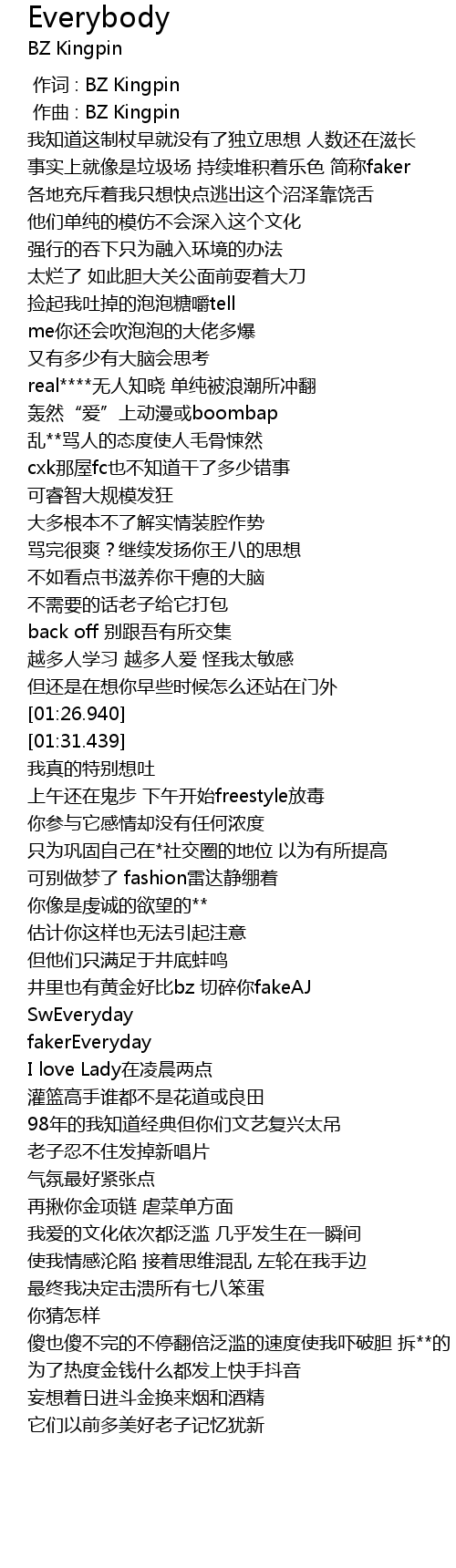| [00:01.000] | zuò qǔ : BZ Kingpin |