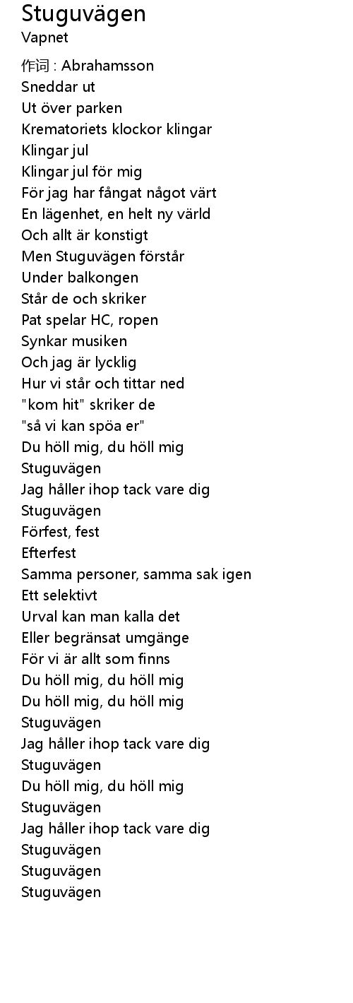 | Song | Stuguvägen |